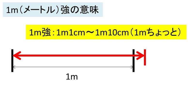 一方で、1m(メートル)強とは「1mを少し超えた時間」のことを表します。具体的には、「1m1cm~1m10cm程度」といった距離を示しているのです。