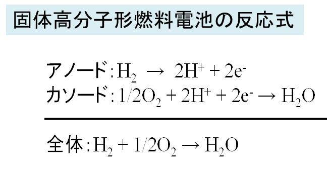 固体高分子形燃料電池(PEFC)における反応式は、カソードとアノードで異なり、以下の通りです。