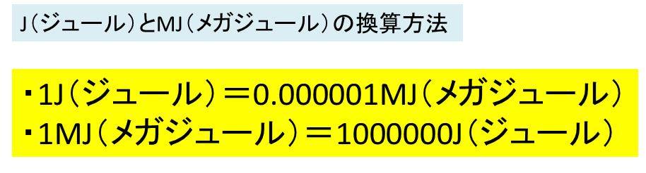 ここでは、このJ(ジュール)とMJ(メガジュール)の単位変換方法について解説していきます。