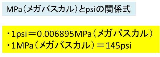 そして、MPaとpsiは、1psi=約0.006895MPaという関係式が成り立ちます。逆に、1MPa=約145psiとなるのです。
