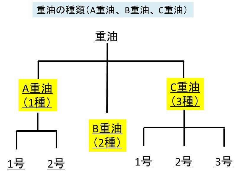 さらに、A重油は1号、2号と2種類に分けられ、C重油は1号、2号、3号と3種類に分類されているのです。