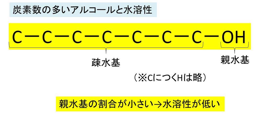 実はアルコールの炭素数と水溶性には大きな関係があります。
