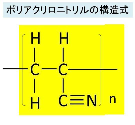 そして、このポリアクリロニトリル(アクリル繊維)の構造式は以下の通りとなります。