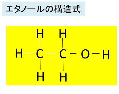 たとえば、アルコールとして代表的な物質であるエタノールの不飽和度を計算してみましょう。エタノールの分子式はC2H5OHで表され、構造式は以下の通りとなります。