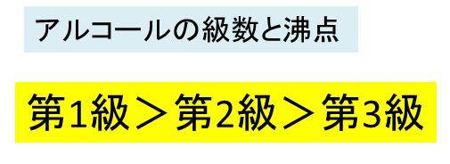 まとめますと、アルコールの沸点と級数の関係は、第1級>第2級>第3級と低くなっていきます。