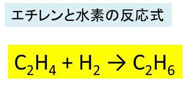 まずは、エチレンと水素の反応でエタンが生成する化学反応式を考えていきます。