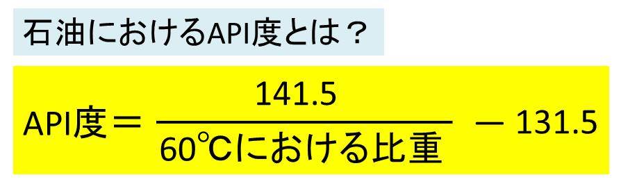 例えば、石油や原油の性質を表す指標としてAPI度(API比重)というものが使用されますが。この意味について理解していますか。