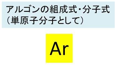 まず、アルゴンは単体であるため、元素記号そのままで表すため、組成式・分子式(単原子分子として)はArとそのままの表記となります。