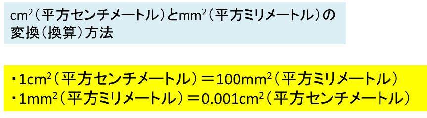 つまり、1mm2を基準として考えると、1mm2=0.01cm2という換算式が成立します。