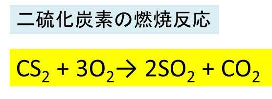二硫化炭素が酸素と反応して、二酸化硫黄と二酸化炭素を生成させます。