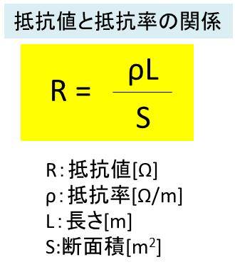 抵抗率と抵抗値の関係は以下の計算式で表されます。抵抗率の単位は[Ω/m]です。