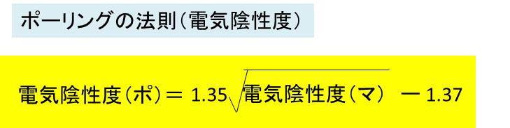 より、正確な値にしようとポーリングがマリケンの式からの換算により、見積もった電気陰性度は以下の通りです。