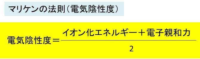 マリケンは以下のような定義式で電気陰性度が見積もられると提案しています。