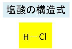 塩酸の構造式は以下のようになります。共有結合について結びついてることがわかります。