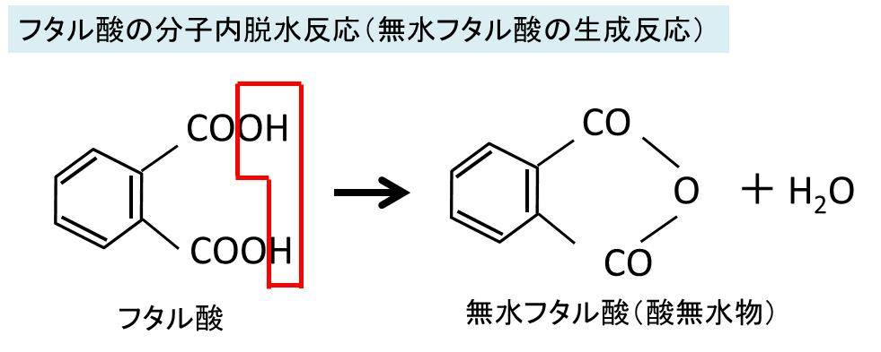 フタル酸の分子内脱水で酸無水物が生成するときの反応式