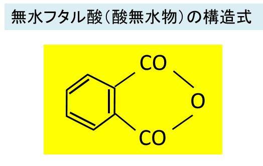 フタル酸の分子内脱水反応と酸無水物の無水フタル酸の構造式