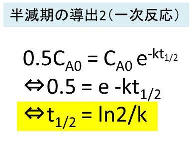 すると、上述のよう一次反応における半減期が導出されます。