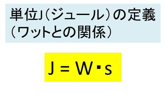 そのため、逆にJを時間の単位であるh(アワー:時間)やs(秒)で割った単位はWと変換できることになります。