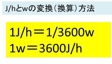 このとき、1h=3600sという関係式を用いると、1J/h=1J/3600s=1/3600 w と変換できるのです。