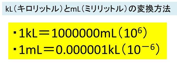 ・kL(キロリットル)とmL(ミリリットル)の関係を導出してみよう