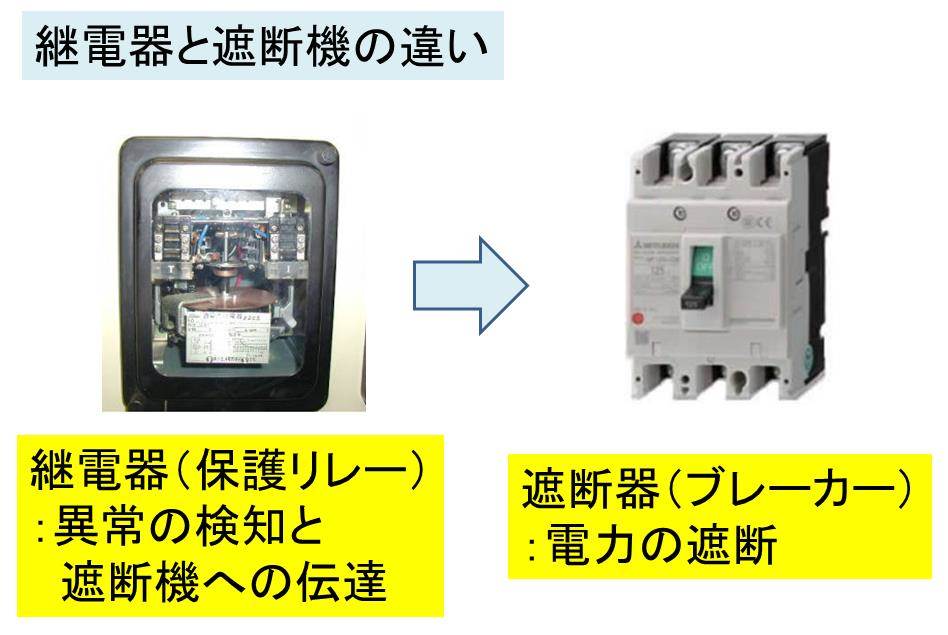 つまり、継電器(保護リレー)と遮断器(ブレーカー)は、