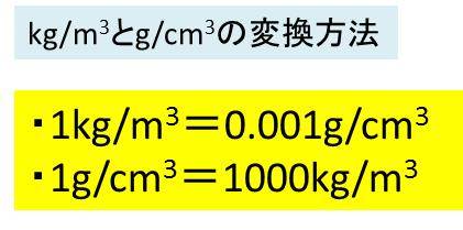 ここでは、このkg/m3とg/cm3を変換する方法について解説していきます。