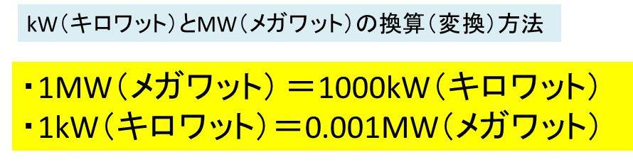 これがキロワットとメガワットの換算式です。きちんと覚えておきましょう。