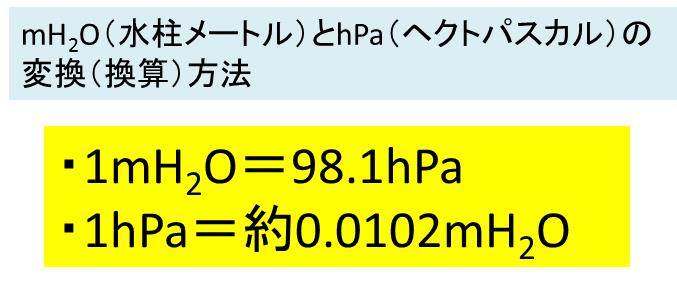 ここでは、このhPa(ヘクトパスカル)とmh2o(maq:メートルエイチツーオー)を換算(変換)する方法について解説していきます。