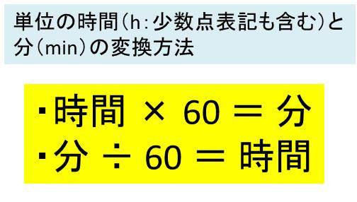 ・分(min)と時間(h:少数点表記)の変換の公式