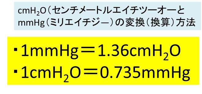 mmhg(ミリエイチジー)とcmh2O(センチメートルエイチツーオー)の変換(換算)方法 計算問題を解いてみよう 関連ページ