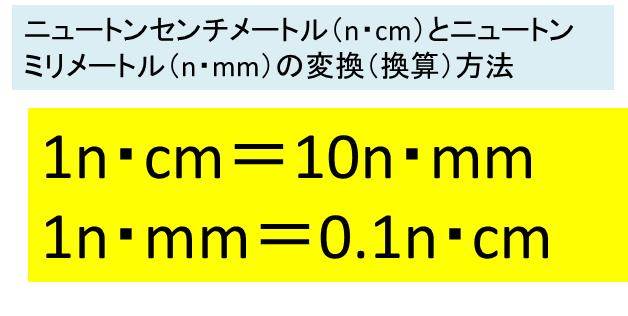 ・ニュートンセンチメートル(n・cm)とニュートンミリメートル(n・mm)の換算方法【単位はn/mやn/mmではない】