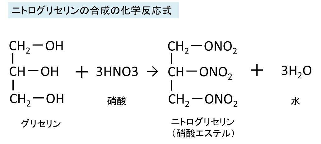 具体的には、グリセリンと硝酸の脱水縮合で合成される硝酸エステルの一つです。