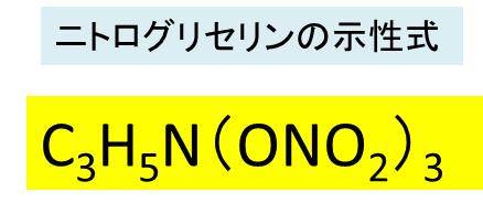 また、ニトログリセリンの示性式はC3H5(ONO2)3となります。