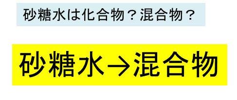 これは、先にも述べた理由と同じであり、砂糖と水が混合されたものであるために、砂糖も純物質(化合物)ではなく、混合物と判断できるのです。
