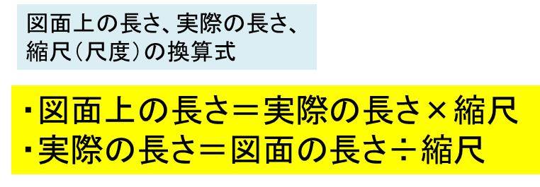 つまり、実際の長さ×縮尺=図面上の長さという換算式が成立するのです。