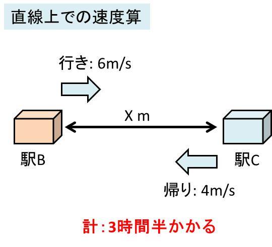 Aさんがある駅Bと駅Cの間をランニングしているとします。行きは秒速6mで走り、帰りは秒速4mで歩いて戻ってきたところ往復で3時間半かかりました。