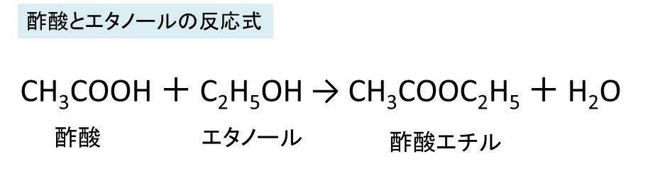 酢酸とエタノールから酢酸エチルを生成する反応式